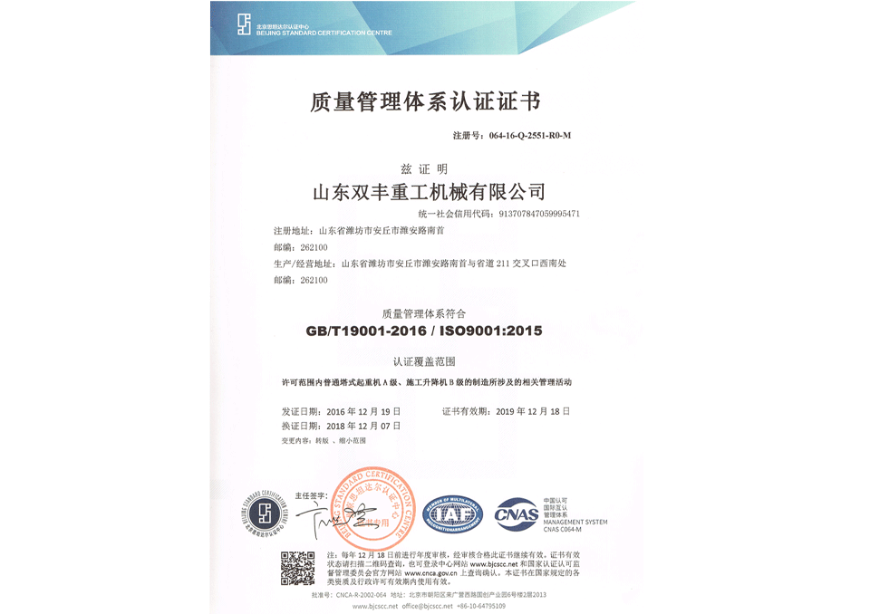 質(zhì)量管理體系認(rèn)證證書(shū)