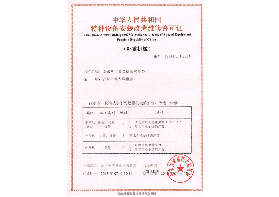 特種設(shè)備安裝改造維修許可證